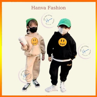 Bộ nỉ bông cho bé trai bé gái dầy dặn kèm mũ_Quần áo trẻ em dài tay thu đông