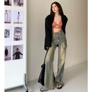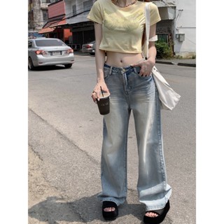 Quần Denim Ống Rộng Lưng Thấp Phong Cách Retro