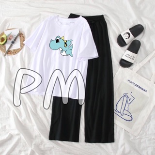Sét áo khủng long bụng trắng + quần ống rộng cạp cao