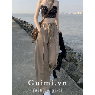 Quần Thể Thao Ống Rộng Lưng Cao Dây Rút Thời Trang Cho Nữ