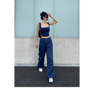「MOTEL7」Quần Dài Ống Rộng Thẳng Lưng Thun Cột Dây Màu Trơn Mỹ Hàng Có Sẵn