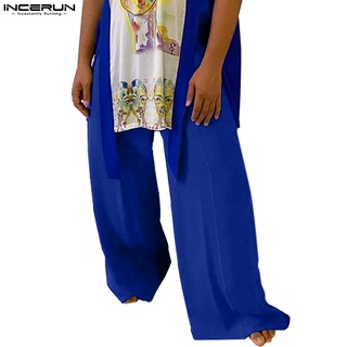 Quần ống rộng INCERUN lưng thun màu trơn thời trang cho nam với 3 màu tuỳ chọn