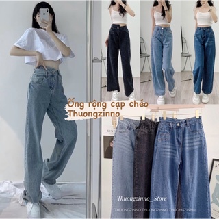 Quần bò ống rộng cạp chéo thiết kế lạ măt Quần jean ống rộng ulzzang ( có video shop mặc mẫu)