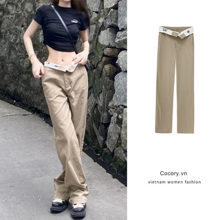 Quần Dài Ống Suông Túi Hộp Nữ Lưng Cao Phối Dây Dáng Chất Vãi Mặc Thoải Mái