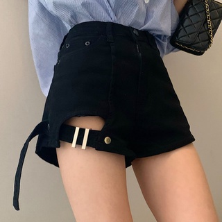 Jiashucheng Quần Short Denim Chữ a Lưng Cao Ống Rộng Rách Gối Phong Cách Mới Mùa Hè Cho Nữ