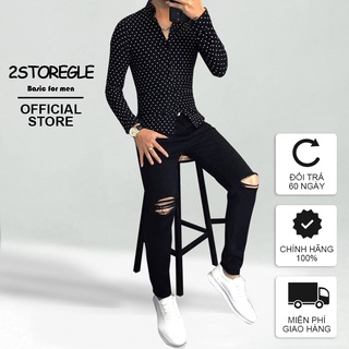 Quần Bò Nam Rách Gối 2STOREGLE Chất Jean Cotton Co Giãn Vải Mịn Đẹp Ít Phai Màu