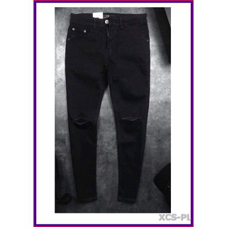 Quần jean nam rách gối màu đen co giãn khóa zip gấu 2 bên đẹp mới 221 hà nội hcm Pon.mens