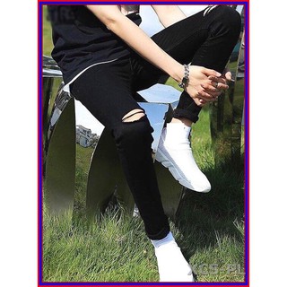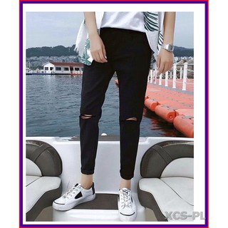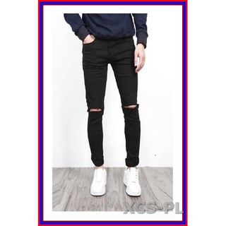 Quần jean nam cao cấp ĐEN RÁCH GỐI siêu đẹp không xù lông, không ra màu, chất giãn tốt rrgoi3-1.19