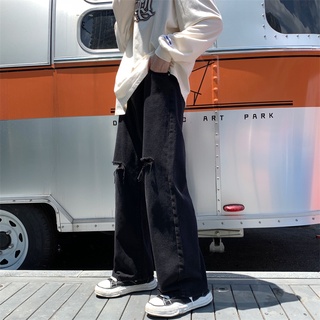 Quần jean nam ống rộng màu đen rách gối hàn quốc