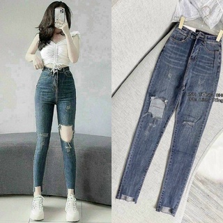 Quần Jean Nữ Lưng Cao Rách Gối Thời Trang