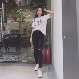 quần jean nữ đen rách gối ngang siêu đẹp