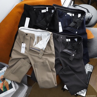 Quần Tây Nam Cạp Cao Sidetab Slimfit Suông Đen Hàn Quốc, Quần Âu Nam Lưng Cao Thời Trang