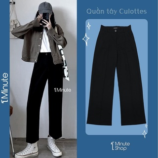 Quần đen ống rộng dài Ulzzang (ảnh thật/sẵn/có bigsize) - quần tây ống suông rộng culottes học sinh 1Minute
