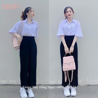 Quần tây nữ lưng cao ống rộng đi học dáng dài suông đứng vải đen mềm - Quần vải cạp cao nữ công sở mặc đi làm học sinh