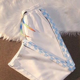 Quần Thể Thao Ống Rộng Kẻ Sọc Caro Phong Cách Hàn Quốc Cho Nữ
