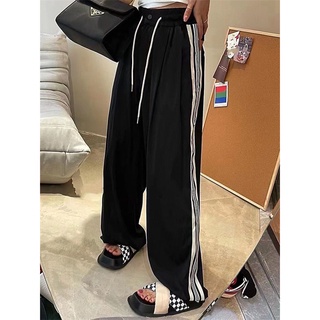 Jiashucheng Quần Thể Thao Ống Rộng Ghép Vải Mỏng Kẻ Sọc Nhỏ Phong Cách Xuân Thu Cho Nữ