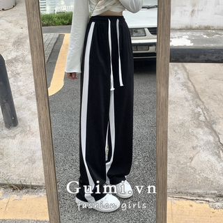 Ming Quần Thể Thao Ống Rộng Kẻ Sọc Trắng Đỏ Thời Trang Cho Nữ TH