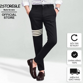 Quần Vải Nam Màu Đen 2STOREGLE Kiểu Dáng Sọc Đùi Trắng Dáng Vừa Phom Đẹp