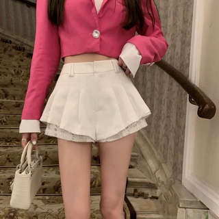 Jiashucheng Quần Culottes Viền Ren Ống Rộng Lưng Cao Xếp Ly Ngắn Hakama Dễ Phối Đồ Thời Trang Mùa Hè Cho Nữ