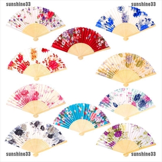 [ HÀNG có sẵn ] quạt tre xếp in hoa phong cách vintage