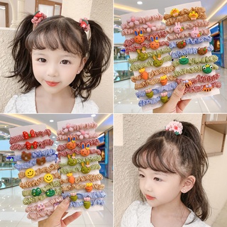 Set 10 Dây Cột Tóc Cao Su Co Giãn In Họa Tiết Trái Cây/ Hoa/ Trái Cây Dễ Thương Cho Bé Gái