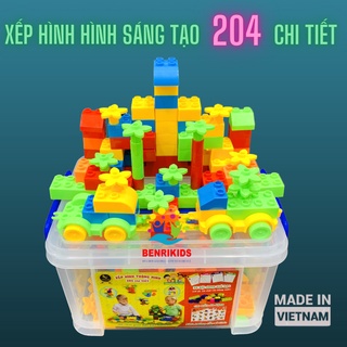 Hộp Xếp Hình Mầm Non Loại Lớn Có Quai Xách 204 Chi Tiết Làm Từ Nhựa Nguyên Sinh Hàng Việt Nam