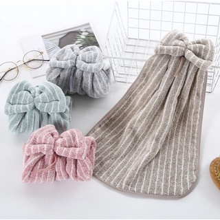 Khăn Lau Tay Treo Tường Bằng Vải Nhung San Hô, Thấm Hút Nhanh Khô Khăn Sọc Hình Nơ Dễ Thương