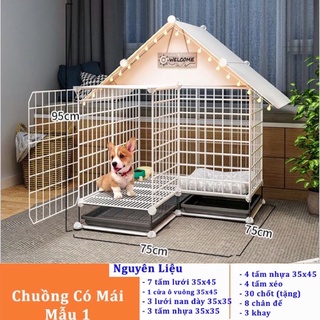 [Tặng Kèm Chốt] Tấm Ghép Lồng Quây, Chuồng Quây Cho Thú Cưng Chó Mèo - Mẫu Chuồng Thú Cưng Có Mái Che