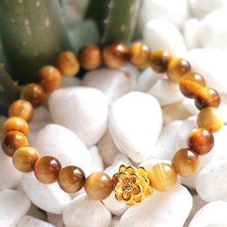 VTMC102 Vòng Tay Đá Mắt Hổ Vàng 8mm Mix Hoa Sen Bạc 925 Mạ Vàng