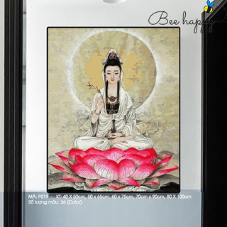 Tranh Sơn Dầu Số Hóa Phật Giáo Nhiều Kích Thước BEE HAPPY Phật Quan Âm Ngự Tòa Sen
