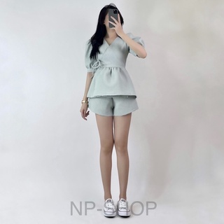 Set đồ⚡️ Set áo đắp chéo quần short ngắn nữ chất xốp freesize 4 màu đen, trắng, hồng, xanh NPSET003