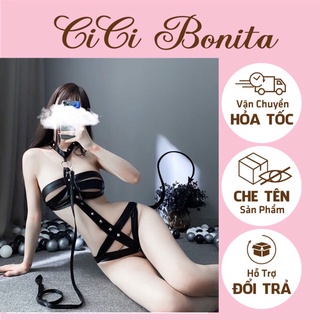 Set đồ ngủ sexy nữ giả da phong cách cảm giác mạnh kèm phụ kiện CB07