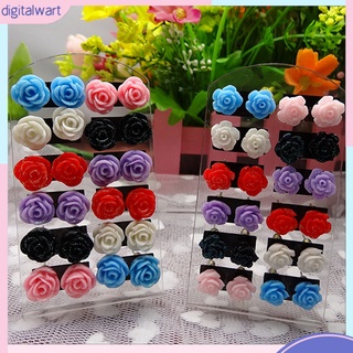 Set 12 Đôi Khuyên Tai Hình Hoa Hồng Xinh Xắn Dành Cho Nữ