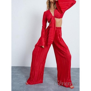 Set Áo Cổ Chữ v + Quần Dài Ống Rộng Thời Trang Mùa Hè Cho Nữ