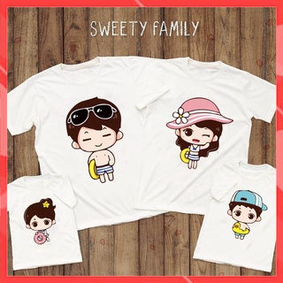 Áo Thun Gia đình chibi dễ thương đi biển mùa hè