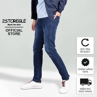 Quần Bò Nam Xước Xanh Đậm 2STOREGLE Dáng Body Slim Fit Chất Mịn Đẹp Không Xù Lông Không Bai Gião