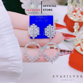Bông tai bạc nữ kiểu thả hình tròn đính đá nhân tạo - Trang sức bạc Evasilver