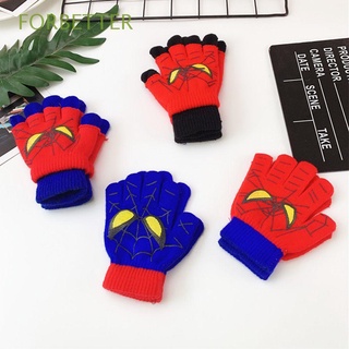 Găng tay hai lớp giữ ấm chống gió bằng acrylic mềm hình người nhện dành cho bé trai