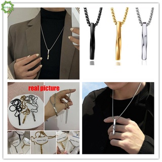 Cod Qipin Simple Men Women Punk Spiral Rectangle Geometry Pendant Necklace Steel Chain Couple Jewelry Gifts