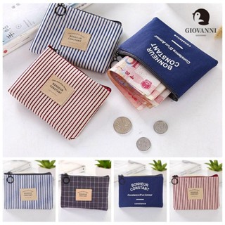 GIOVANNI Túi Đựng Tiền Xu / Son Môi Mini Bằng Vải Canvas In Họa Tiết Kẻ Sọc Kèm Móc Khóa Tiện Dụng