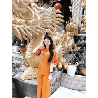 set thể thao croptop ống rộng màu cam PC alohashop91