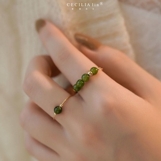 Nhẫn Đính Ngọc Bích Hetian Màu Ngọc Bích Sang Trọng Phong Cách Retro Đơn Giản Cao Cấp Cho Nữ