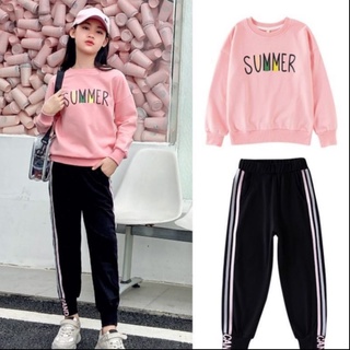 Bộ quần áo thu đông nỉ da cá "SUMMER" 13-45kg cho bé gái 4-14 tuổi. Xinh xắn, đáng yêu. G34