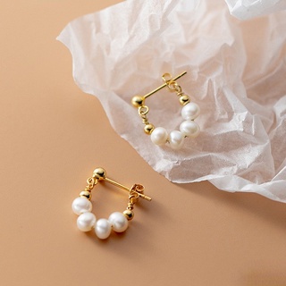 HUGGIES Bông tai mạ bạc 925 đính ngọc trai nhân tạo thời trang