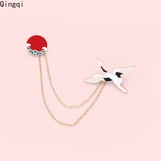 Ghim cài áo Miss Zoe dây xích gắn hình chim hạc + sóng biển kiểu Nhật Bản sáng tạo thích hợp làm quà tặng cho bạn bè