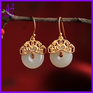 Bông Tai Bạc A7 Đính Đá Ngọc Bích Trắng Phong Cách Retro Trung Quốc