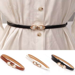 Thắt Lưng Da Bản Nhỏ Đính Hạt Ngọc Trai Thiết Kế Thanh Lịch Dễ Phối Đồ Thời Trang Cho Nữ