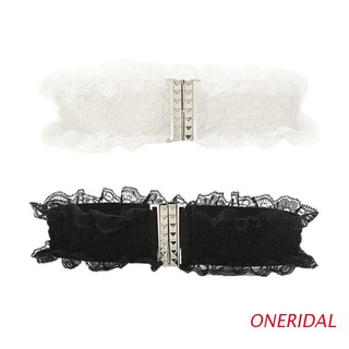Thắt Lưng Bản Rộng Co Giãn Phối Ren Màu Trắng Đen Thời Trang Cho Nữ