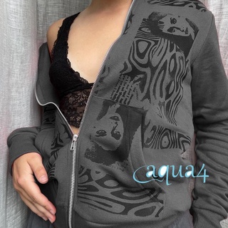 ANANA-Women Hip Hop Streetwear Hoodies Women Jacket Angel Dark Print Jacket Coat Goth Harajuku Y2k Clothes Punk Jacket