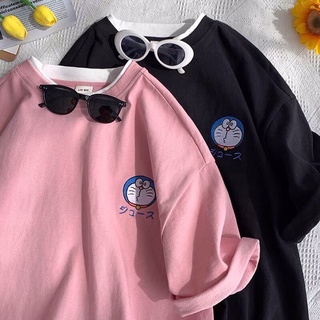 (XẢ KHO) Áo thun tay lỡ unisex - Phông nam nữ 4 màu cotton dáng xuông streetwear - mặc nhóm lớp in hình Doraemon